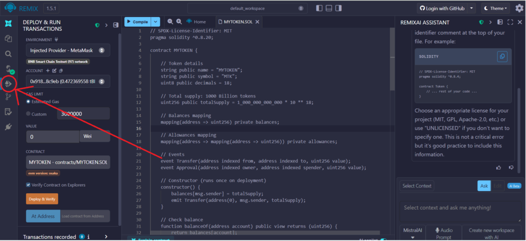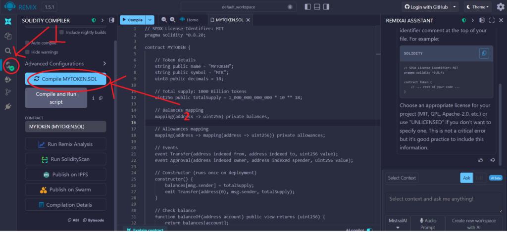 after pasting the code in mytoken.sol and somply go to next step